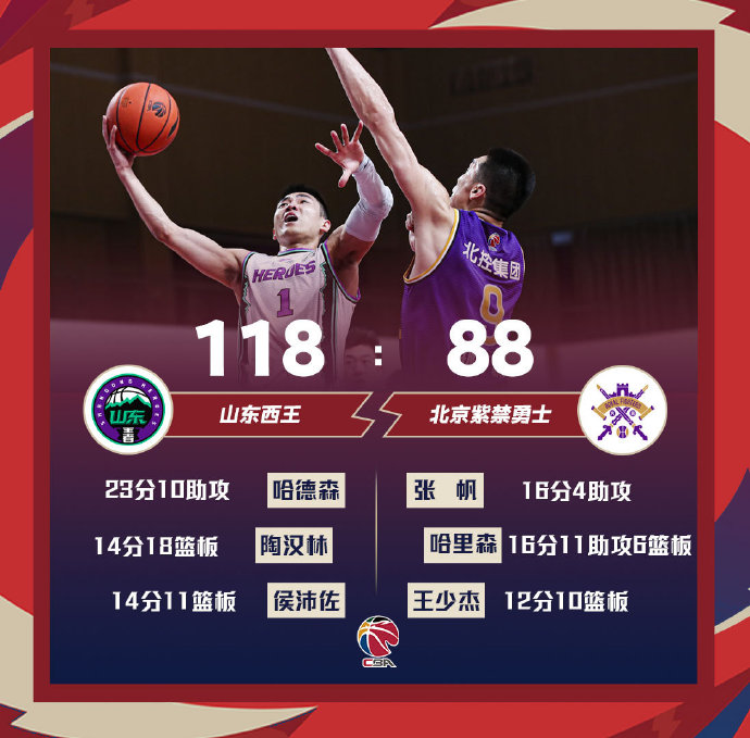 山东118-88大胜北控 哈德森23+10 陶汉林14+18 哈里森16+11