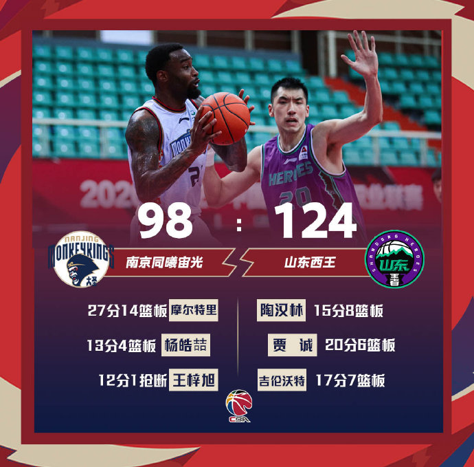 山东124-98战胜同曦 贾诚20+6 摩尔特里27+14