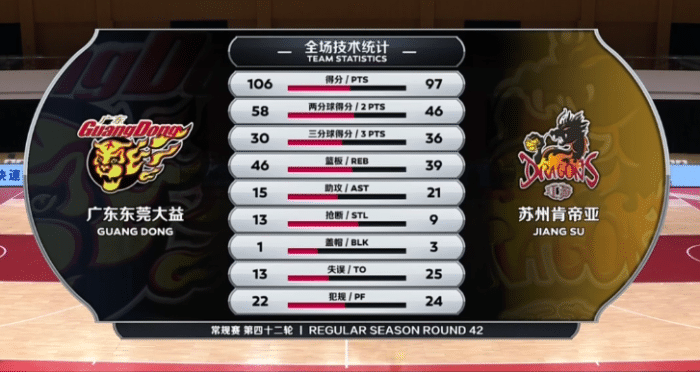 来源:24直播网03-06 10:1824直播网3月6日讯 今天晚上CBA常规赛结束了一场焦点战,超长连胜的广东对阵超长连败的江苏,本来这是一场胜负悬念不大的比赛,不过比赛过程却惊心动魄。上半场广东领先11分,其中还有杜锋怒摔战术板,下半场江苏在史鸿飞。吴冠希和威尔斯的带领下逐渐爆发,末节将分差缩小到3分,不过老将周鹏和超级外援马尚带队稳定住局面,成功的以106-97拿下胜利。布鲁克斯33分8板4助是广东赢球的最大功臣,吴冠希22分10板、威尔斯20分6板8助和史鸿飞24分6助,全部空砍。