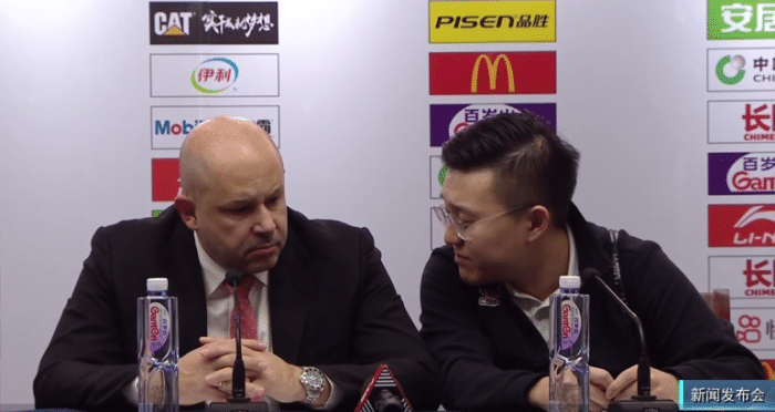 比赛结束之后的新闻发布会: