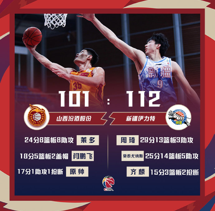新疆112-101轻取山西 莫泰25+14 周琦复出29+13