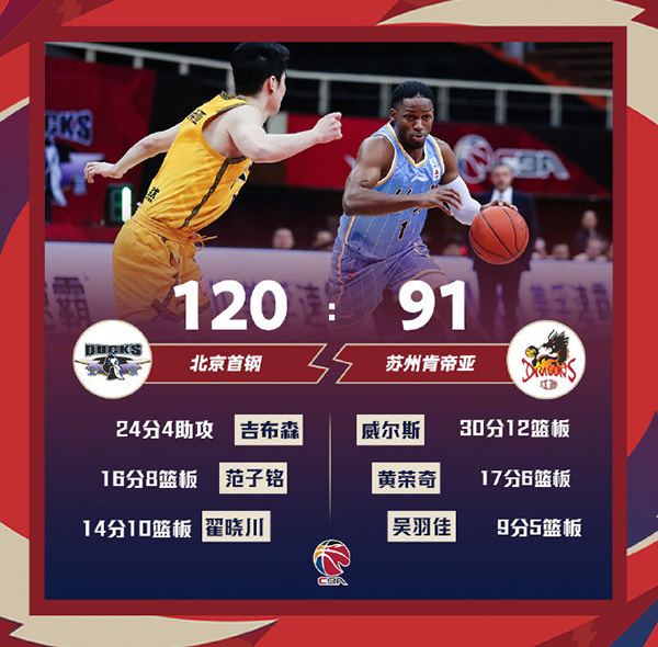 北京120-91轻取江苏 吉布森24+4 威尔斯30+12