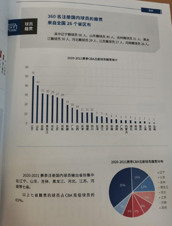 本赛季,CBA一共有360名球员,其中球员最多的是辽宁,当下有50名辽宁籍贯的球员在CBA打球。排在第二位的是山东男篮,他们有40名球员。排在第三的是吉林、第四是黑龙江、第五是河北。