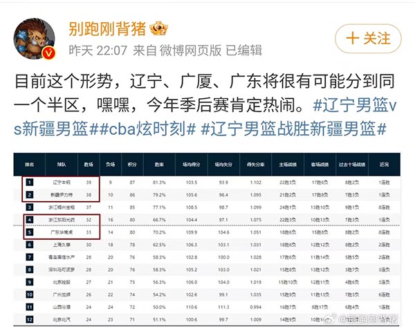 不过,辽篮到时辟谣了,但是按照当下的排名,辽宁男篮季后赛将和广东男篮、浙江广厦分在一组,这样的分组堪称死亡之组,这对于辽宁男篮的卫冕是非常不利的。