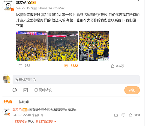 至于郭艾伦的复出,在辽篮输掉天王山之战,外界的声音更加强烈,但郭艾伦在社交媒体上表示真的很想和大家一起上,他表示未来会和球迷们一起聊聊自己的情况。很显然,郭艾伦在本赛季很难复出了。