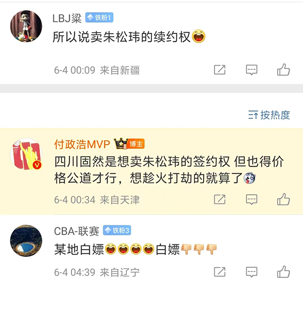 在遭遇了欠款之后,名记付政浩也是报道四川男篮在兜售朱松玮的签约权,不过四川男篮还是很有自己的坚持,名记付政浩强调四川男篮虽然想要卖掉朱松玮的签约权,但是前提是价格公道,想趁火打劫就算了。当朱松玮的交易被公开化,这对于广东男篮来说并不是好消息。