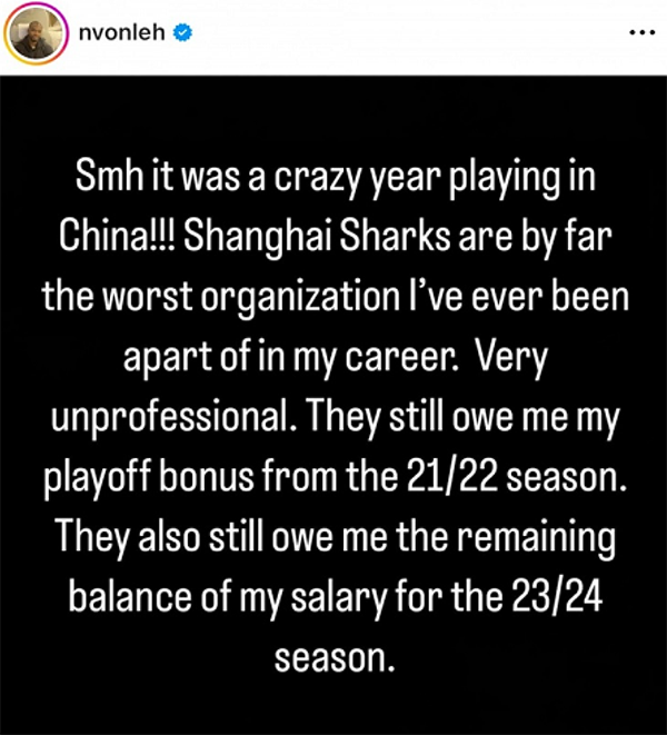 来源:24直播网06-29 11:4924直播网讯 上海男篮被外界关注,引发不小的争议,起因是曾效力上海男篮的外援冯莱在社交媒体上怒喷球队,这位悍将连续发文,直言:“上海大鲨鱼是我生涯至今效力过的最糟糕的俱乐部。非常的不职业。”