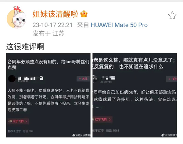 而让郭艾伦更加沮丧的或许是媒体人晒出的部分辽宁男篮球迷的言论,在社交媒体网络有辽宁男篮球迷怒批:“合同年,必须整点没有用的。”、“老是这么整,那就真的没有意思了。”这部分的球迷质疑郭艾伦在合同年给自己加伤病的BUFF,好让俱乐部动念头。甚至有球迷嘲讽:“老传统了,不信你给他南下投亲,立马生龙活虎第二春。”