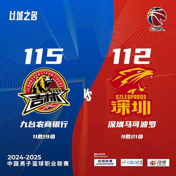 吉林115-112逆转深圳 姜伟泽绝杀 琼斯42+16+7 贺希宁36+7+5