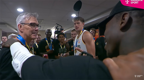 返回酒店期间,德国男篮全队坐在大巴中齐唱《我们是世界冠军》,场面十分震撼人心;不久前,施罗德再次在社媒上写道:我们是世界冠军。