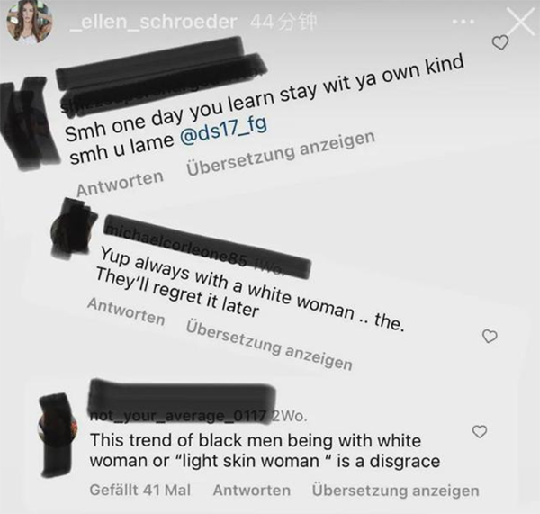 因为肤色的原因,使得艾伦经常受到外界的抨击,一般是在施罗德或者艾伦晒出全家的照片时,往往会有很多人恶语相向,称艾伦就是因为钱才和黑人的施罗德在一起的。甚至还有很多非常难听的话。
