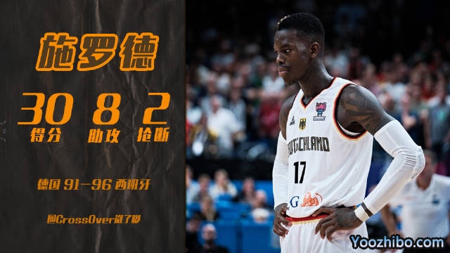 德国:施罗德30分8助攻2抢断,小瓦格纳15分3篮板3助攻,奥布斯特15分5篮板,泰斯10分3篮板,蒂曼6分2篮板3助攻3抢断,罗9分2助攻。