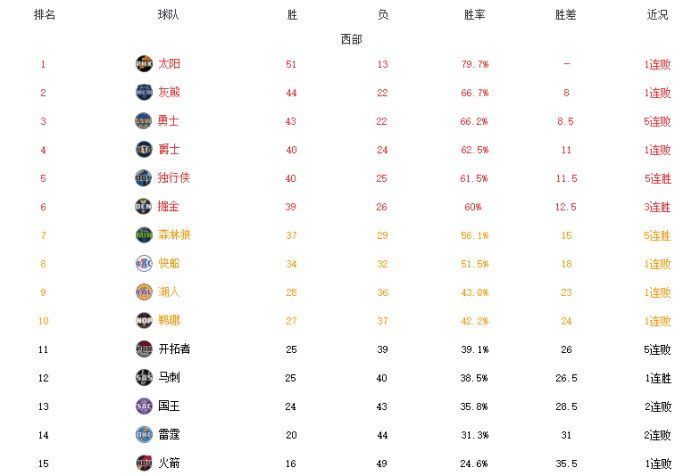 目前西部第5的独行侠5连胜、第6的掘金3连胜、第7的森林狼5连胜,这三支球队是西部最大的搅局者,他们落后前四的差距并不大,尤其是独行侠,距离爵士只有1个胜场。森林狼距离直通季后赛的前6有2.5个胜差的,但他们近期的状态很好,依旧有希望拿到季后赛门票。这几支球队竞争激烈,谁可以延续胜利,不掉链子,看点十足。