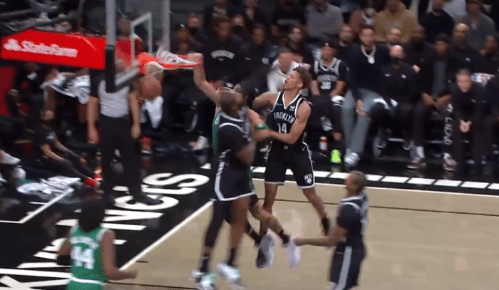 塔图姆1V3单臂隔扣庄神,霸气!怒瞪篮网小将,替补席嗨了
