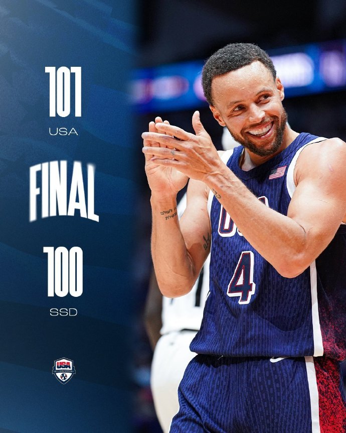 末节,进入了白热化阶段,恩比德和乔克相继得分,而加布里埃尔也命中了关键的三分球。南苏丹队一直不放弃,斗志顽强,琼斯拿了三双。多次挑战詹姆斯和戴维斯,沙约克一个人连拿五分,紧咬比分。比赛最后,索尔底角后撤步三分反超。美国最后一攻,詹姆斯一己之力打进关键球,琼斯和加布里埃尔的绝杀尝试都未能成功,最终,美国队以101比100险胜南苏丹队。