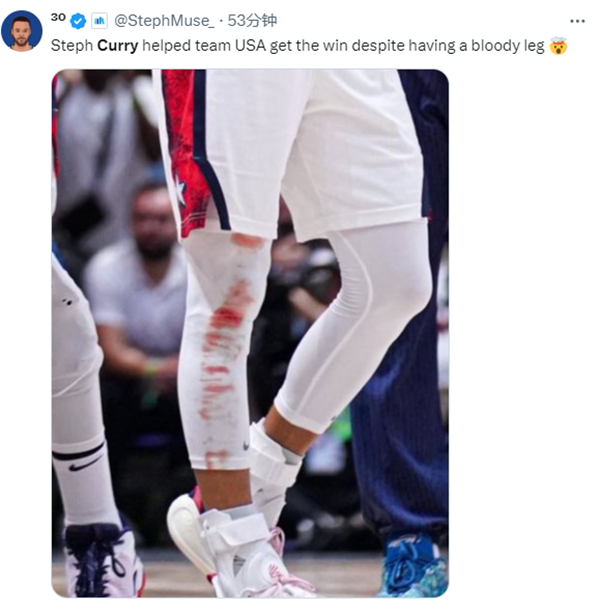美国男篮疯狂庆祝,谁留意到库里的右腿吗?腿上满是血迹,库里的球迷直言:即使库里的腿部流血,他仍旧帮助美国男篮拿下胜利。