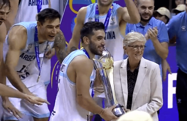 阿根廷夺得美洲杯冠军,众球员把金牌挂在脖子上合影庆祝,坎帕佐第一节接过冠军奖杯,然后坎帕佐举着奖杯高高跃起,尽享夺冠的喜悦;阿根廷全队围着奖杯跳舞欢呼庆祝,这是阿根廷队史第三个美洲杯冠军。