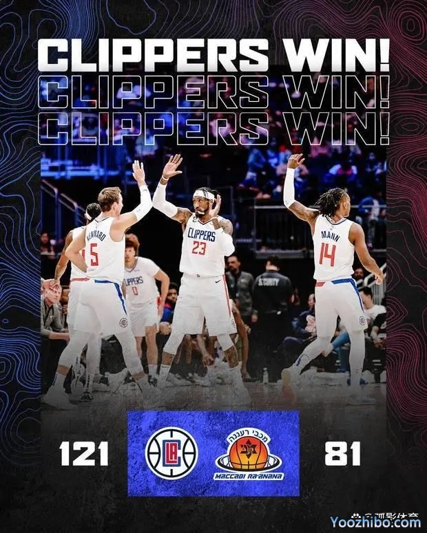 末节,提前进入垃圾时间,快船队给角色球员们练兵的机会,马卡比队仍留下部分主力,但他们无力翻盘,快船队以121-81获胜。