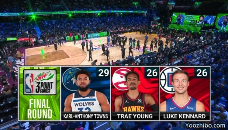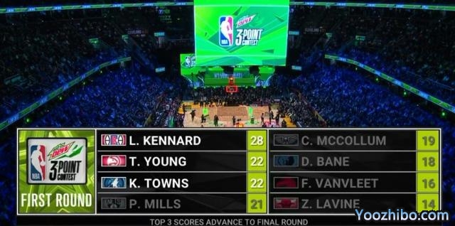 第二位出场的是特雷-杨,他开局手感不佳,但是随后找到手感,无奈唐斯分数过高,他最后得到了26分。最后压轴出场的是首轮得到最高分28分的肯纳德,他发挥不错最后也得到26分。