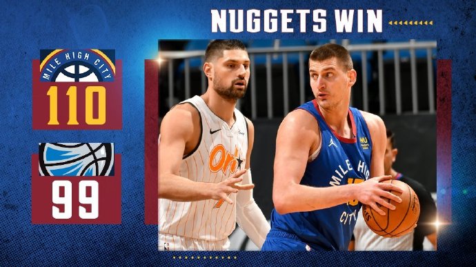 掘金(26-17):约基奇28分15篮板10助攻2抢断、波特18分7篮板、米尔萨普2分3篮板2抢断2盖帽、巴顿19分8篮板3抢断、穆雷21分4篮板4助攻、多齐尔12分4篮板2助攻、格林2分、纳吉6分5篮板