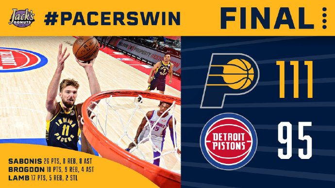 - 【集锦】[微博全场集锦] 小萨26+8+8 布罗格登18+9 格里芬16+6 步行者胜活塞止4连败2021-02-12 11:38:59