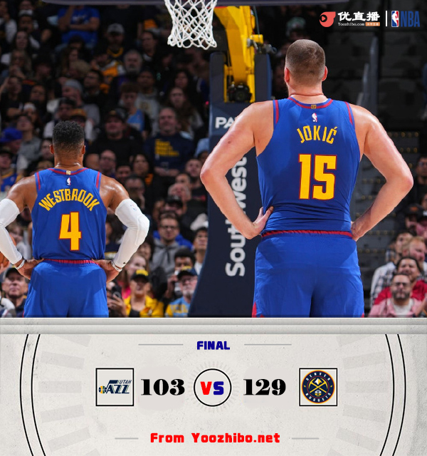 24直播网11月3日讯 NBA常规赛,掘金主场迎爵士,本场比赛马尔卡宁和克拉克森缺阵,贾马尔-穆雷也不打。比赛开始,双方上来展开对攻,小波特接连三分单节上双,掘金一波15-0超级攻击波直接建立领先,朱赞成为爵士替补奇兵,连续冲击内线造杀伤止血,首节掘金领先11分,次节掘金进攻端受阻,爵士全民皆兵开始追分,但掘金也都能回应,半场掘金还领先9分。下半场,约基奇终于发力,里突外投单节狂砍18分,掘金打出进攻高潮直接拉开20分以上领先,末节双方都换上替补练兵,但掘金还是能保持住20分以上领先,最终掘金127-103轻取爵士,送对手6连败。