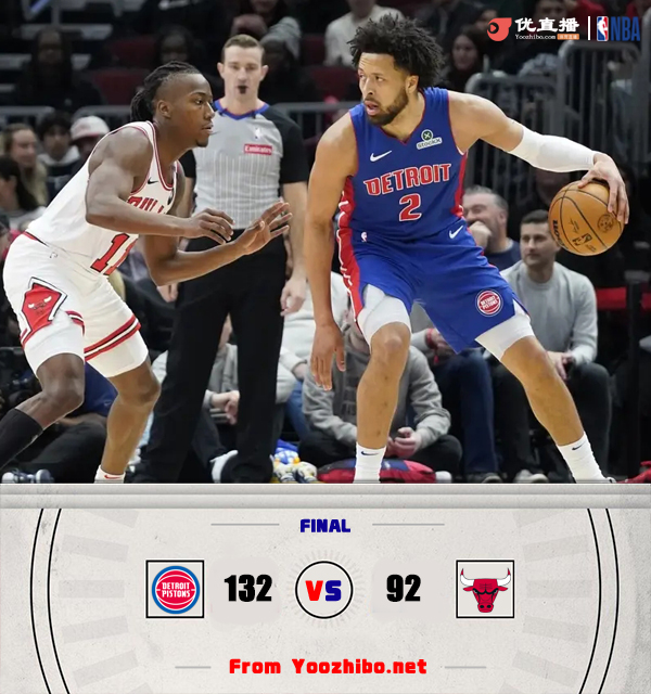 24直播网2月12日讯 NBA常规赛,活塞客场挑战公牛。活塞27胜26负东部第6,公牛22胜31负东部第10。上半场,活塞反客为主率先发力,多点开花很快取得两位数领先,次节公牛依旧低迷,打铁失误不断,活塞火力全开,攻防两端碾压对手一度将优势扩大到45分,半场战罢活塞71-29领先公牛。下半场,公牛进攻回暖,双方围绕40分的分差展开拉锯战,末节成为垃圾时间,最终,活塞132-92狂胜公牛40分。