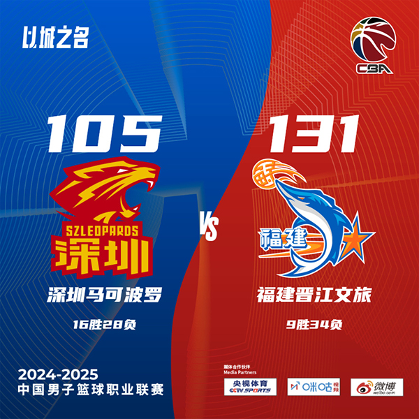 24直播网讯北京时间3月23日中国男子篮球职业联赛 常规赛,深圳马可波罗对阵福建晋江文旅。半场深圳52-67福建,最终深圳105-131福建。深圳马可波罗王浩然22分6板7助,贺希宁20分7板3助;福建晋江文旅奎因-库克27分1板1助,约瑟夫-杨27分3板6助。