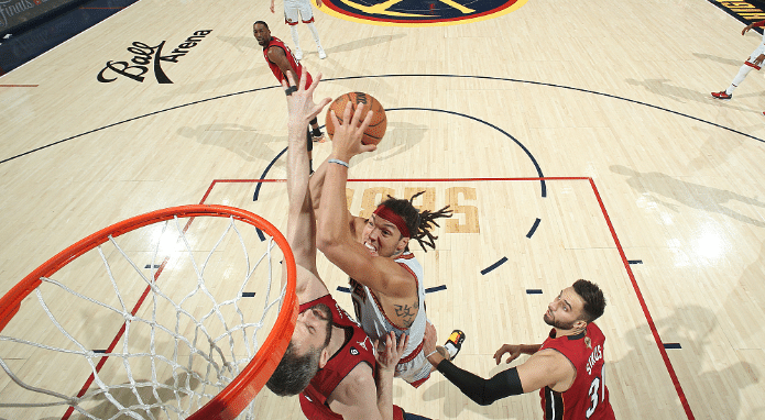 巴特勒两罚全丢,回过头来穆雷暴扣、小波特抛投和杰夫-格林扣篮,掘金开局0-5落后,打出了一波12-0,热火4分钟没有得分,连续10投打铁,还有巴特勒两罚不中。巴特勒手感低迷,斯特鲁斯上篮2+1为热火止血,约基奇命中三分球。阿德巴约、马丁和斯特鲁斯连续为热火追分,阿德巴约连续两个2+1,热火打出一波13-2。马龙派上小乔丹,起到不错的效果,小波特连得4分。阿德巴约补篮得分,他单节轰下14分,率队领先2分。