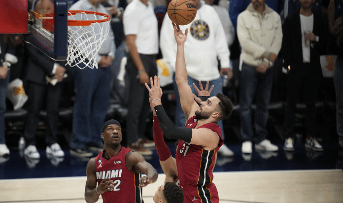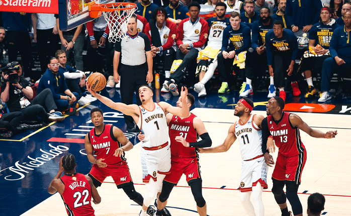 约基奇和波普连得4分,布朗反击暴扣,掘金在约基奇的带动下来连得6分,缩小比分差距。热火的老蒋洛瑞连续命中三分球,约基奇抛投命中,穆雷跳投得分,布劳恩补篮得手。阿德巴约抛投打进,波普反击上篮居然没有沾框,小波特暴扣。