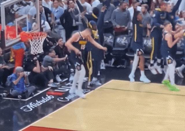 比赛最后阶段,布鲁斯布朗命中杀死比赛的三分球,约基奇化身啦啦队,在场边疯狂甩毛巾庆祝。他知道,这场比赛赢了,这个赛季也已经非常接近冠军。而镜头给到热火球员,他们都非常沮丧。巴特勒等球员提前离场,显得非常绝望。而看台上,也早已出现了大量的空位置。对于热火而言,他们已经陷入绝境。大数据机构的实时预测显示,掘金夺冠概率升至97%,而热火仅剩3%。
