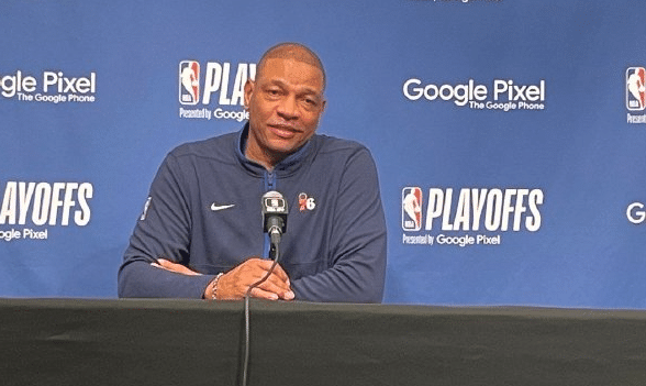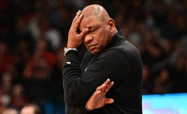 这场比赛期间,凯尔特人打出一波流,76人大比分落后的情况,镜头给到场边的老里弗斯,只见他抱着头无奈。要知道这场比赛之前老里弗斯很自大,赛前得知太阳队的蒙蒂下课,再联想到之前雄鹿的布登被解雇,老里弗斯半开玩笑地说:“不要赢得年度最佳教练,我只能告诉你这样事情会进展得并不顺利。”