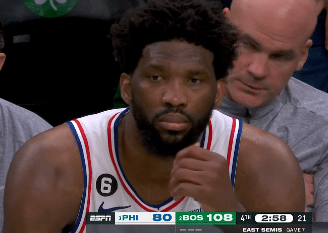 76人惨败出局:恩比德大笑拥抱塔图姆 哈登沮丧里弗斯连创耻辱纪录