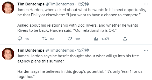 谈到与老里弗斯的关系以及是否想老里继续执教76人,哈登说道:我们的关系不错。