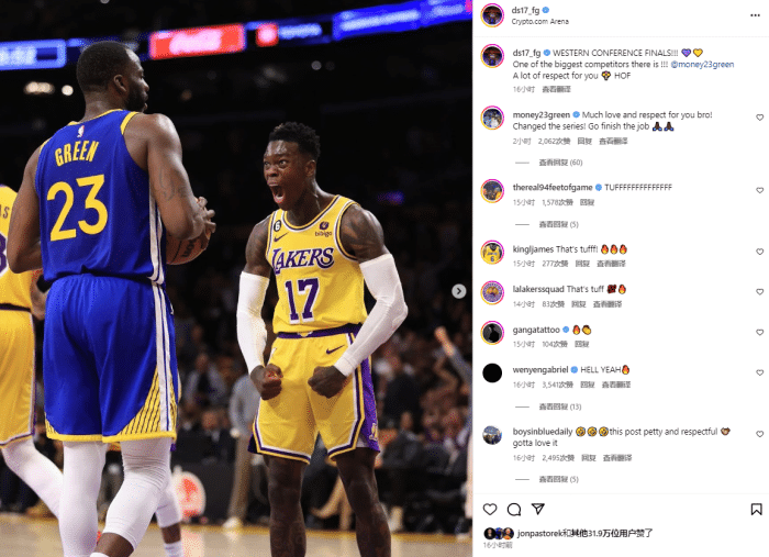 勇士球星格林则在评论区回应:兄弟,对你只有爱与尊重。你改变了系列赛,去完成这个任务吧。