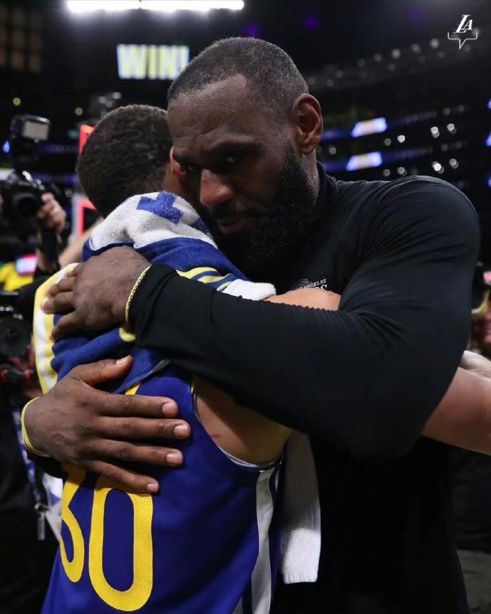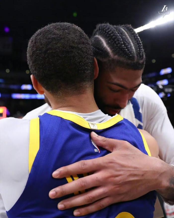 在比赛结束后,勇士队的球员也是和湖人队的球员进行了互动,而詹姆斯这边也是找到了库里,讲真的,詹姆斯还是很暖心的,当看到库里在和队友相互安慰,詹姆斯并没有发声,而是安静的站在一边等待库里和队友互动结束,詹姆斯才和库里拥抱,而在詹姆斯一番耳语之后,库里沮丧的申请才好一些,库里的脸上也是露出了笑容。在詹姆斯和库里的互动结束后,等待在一边的浓眉哥也是很暖心的上来送出了自己的安慰。