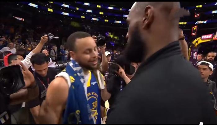 勇士出局后,詹姆斯说了啥让库里露出笑容?举动机智,浓眉太暖心
