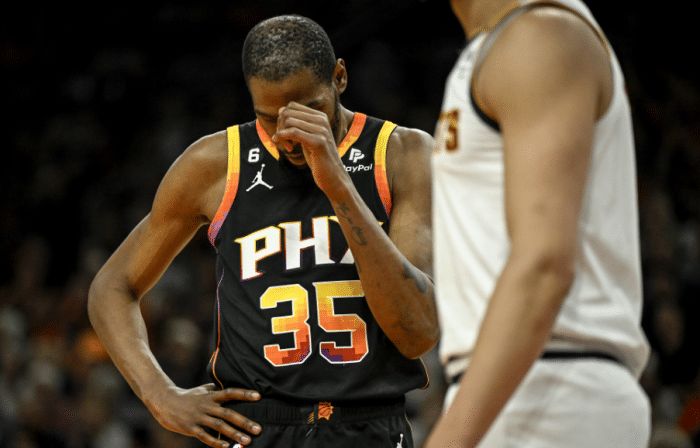 杜兰特黯然出局:赛后带头担责盛赞约基奇 布克拒绝采访提前离开球馆