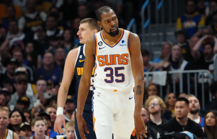 目前太阳总比分2-3落后掘金,已经被逼到生死边缘,只要再输一场,他们就会被淘汰出局;前5场比赛,杜兰特和布克在G3和G4疯狂得分,率队杀进天王山;可G5一战杜兰特和布克明显透支,约基奇轰下三双带队主场拿下赛点。