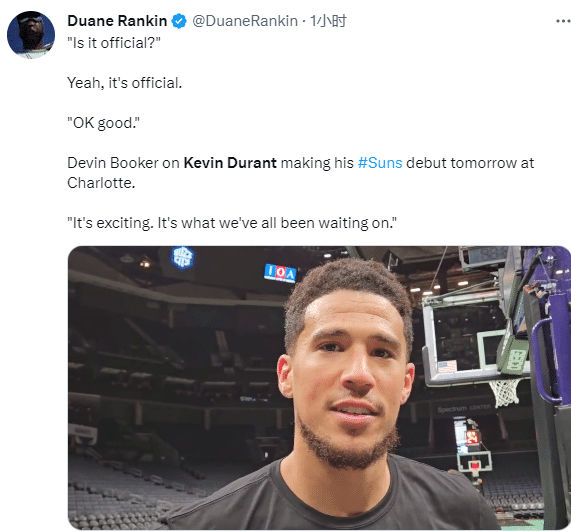 太阳官宣杜兰特明天首秀!KD自曝膝伤早已痊愈 布克坦言超级兴奋