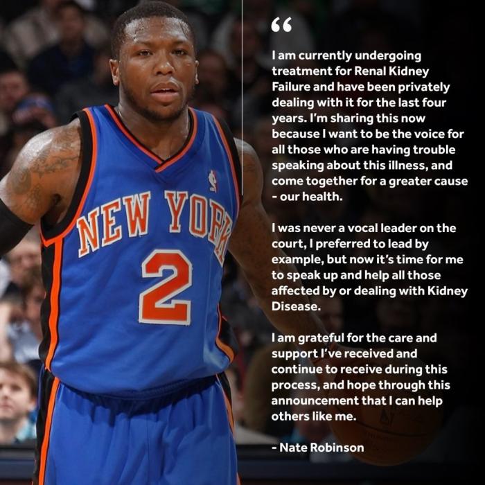 “小土豆”内特-罗宾逊发表声明:我正因肾衰竭接受治疗,并且过去四年都在与其悄悄地进行着斗争。我现在分享出来是想为那些不敢发声的人们发声,提醒大家注意一个更重要的话题,我们的健康;我在球场上时从来都不是一位声音上的领袖,我更喜欢用行动说话。