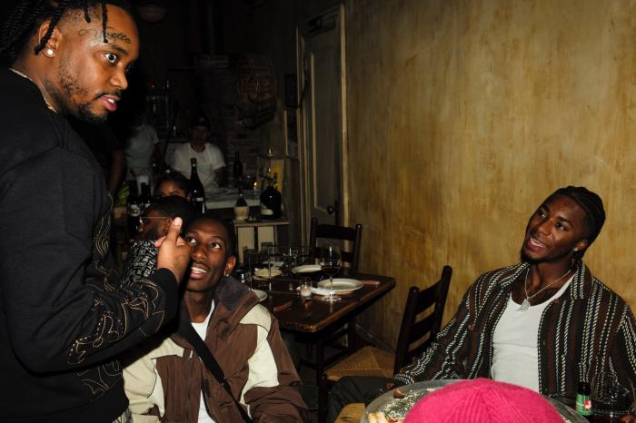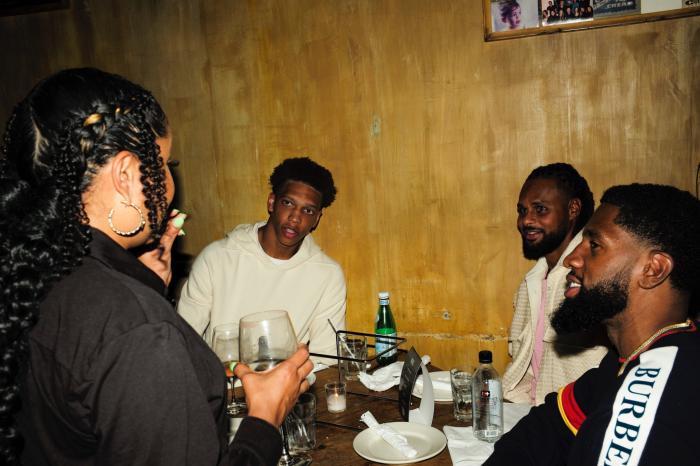 篮网众球员一起共进晚餐,杜兰特、欧文和西蒙斯三巨头坐在同一桌,他们坐在一起开怀畅聊,喝了一些酒和饮料;爱德华兹、米尔斯和罗伊斯-奥尼尔坐在一桌,小库里和格雷等人一桌。