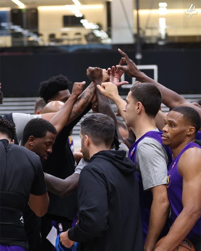 湖人官方晒训练照:浓眉单挑詹姆斯表情抢镜 名嘴相信威会打得更好