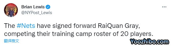 来源:24直播网09-27 15:3424直播网09月27日,据名记Brian Lewis报道,篮网已经签下前锋雷匡-格雷,双方签下一份训练营合同;篮网训练营20人大名单出炉,杜兰特、欧文和西蒙斯新三巨头领衔15+2冲冠阵容。