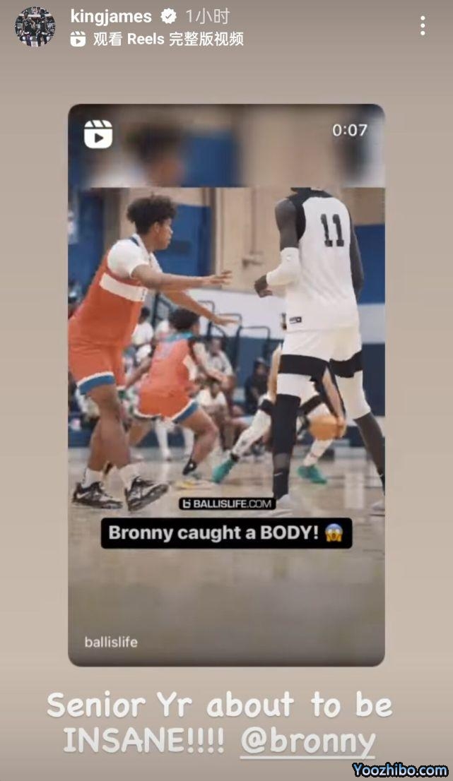 布朗尼虽然身高只有1米91,但遗传了父亲劲爆的身体素质,集锦中的两次暴扣,相当有观赏性。两记扣篮都显得霸气十足,颇有几分父亲詹姆斯的风范,全场一阵欢呼!