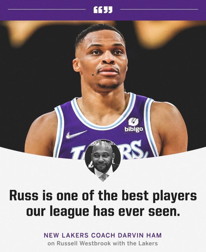 谈到威少,哈姆表示:威少是联盟历史上最出色的球员之一。他的油箱里仍有油。我不知道为什么人们总是尝试唱衰他,每个人都知道他的能力,我很兴奋能够和威少一起合作。