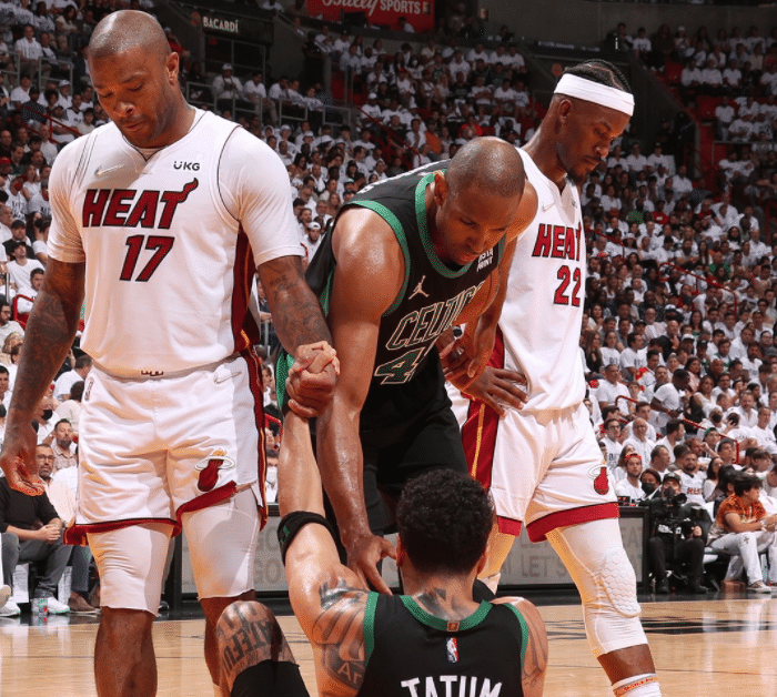 末节,布朗轰进三分,塔图姆连得5分,绿军8-2把分差扩大到17分,暂停回来,布朗连续命中两记3分,之后更是上演炸裂暴扣,绿军替补席疯狂庆祝;热火继续追分,但绿军一直保持领先,塔图姆两罚和布朗关键2分杀死比赛,最终绿军靠下半场爆发从而夺赛点,距离总决赛仅差一胜。