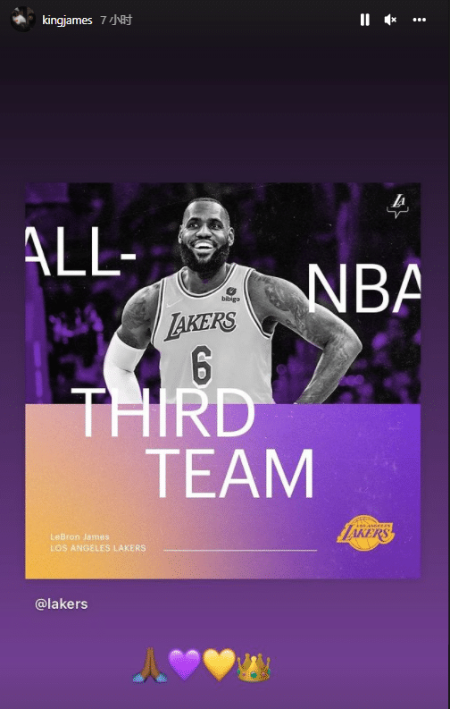 来源:24直播网05-26 10:5124直播网05月26日讯 湖人球星詹姆斯更新社交媒体,转发湖人官媒动态,庆祝自己入选最佳三阵;老詹先是转发湖人庆祝他入选最佳三阵的动态,配上爱心和王冠表情;湖人官方晒詹姆斯本赛季隔扣乐福、轰进三分以及大帽对手的精彩画面,并写道:史上第一位第19个赛季入选最佳阵容的球员,为国王欢呼!