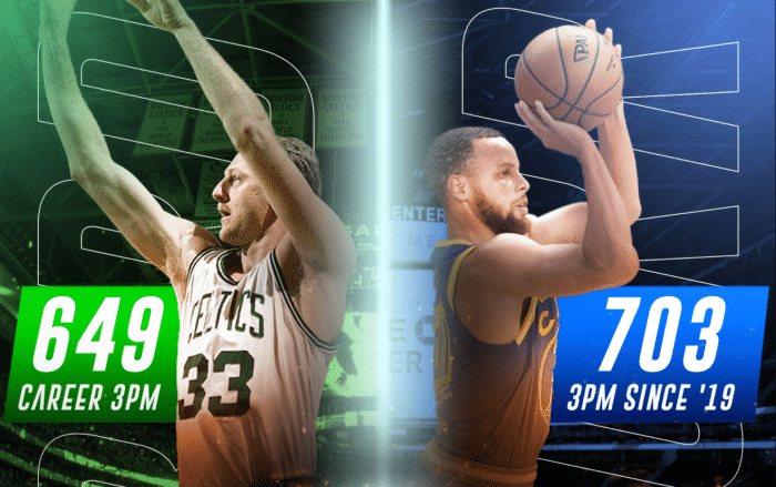 库里三分有多强?近三个赛季命中数超伯德13年生涯!美媒晒图致敬