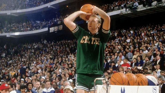NBA从1979-1980赛季开始引入三分,这正是伯德生涯第一个赛季,大鸟是联盟最初的顶级三分射手之一,生涯有多个赛季投出40%以上的三分命中率,也是“180俱乐部”的一员!而且还曾在全明星三分大赛上取得三连冠。尤其是1988年的三分大赛,据说当时大鸟对其他参赛者说了一句“你们是来争第二名的吗?”而且比赛的时候,伯德连热身服都没脱,结果仍然轻松拿到了冠军。不过,伯德虽然三分命中率高,但13年生涯场均只命中0.7记三分,合计命中了649记三分,当时三分还不是NBA球星的主要得分手段。